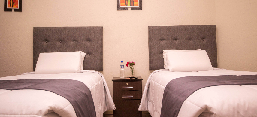 2 single beds with private bathroom, hot water, wifi, smart cable TV. Includes American breakfast.
